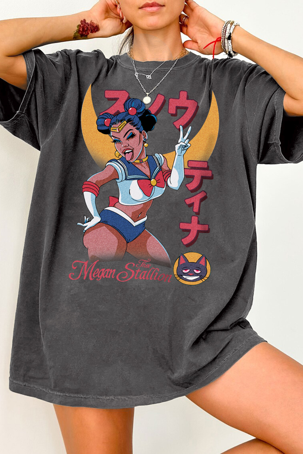 Retro Megan Thee Stallion Sailor Moon Anime Rap Graphic Tee For Women