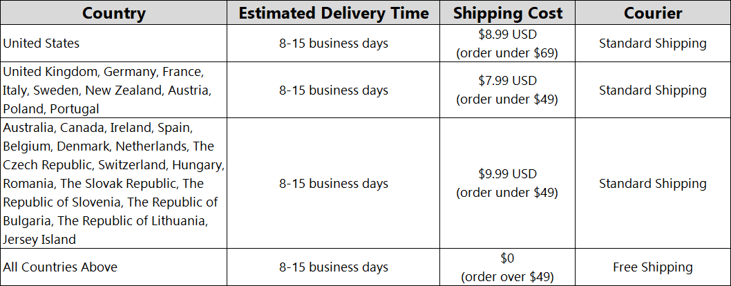 Shipping Rules(PO BOX and APO/FPO addresses is not available now.)